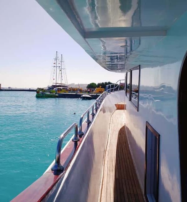 Between stops, relax on the sundeck, enjoy music, and take in the stunning views. A fresh buffet Breakfast & lunch ( Fish fillet, Calamari, Tuna salad, Potatoes, Rice, Pasta, Hot & soft drinks) will be served on board, along with soft drinks to keep you refreshed throughout the day.