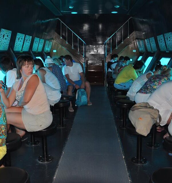 Explore the underwater life of the Red Sea while you are sailing for two hours observing the magnificent coral reefs and the colored fish which will capture you without getting wet through a glass window.